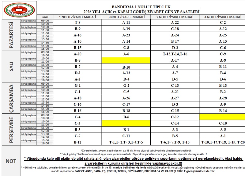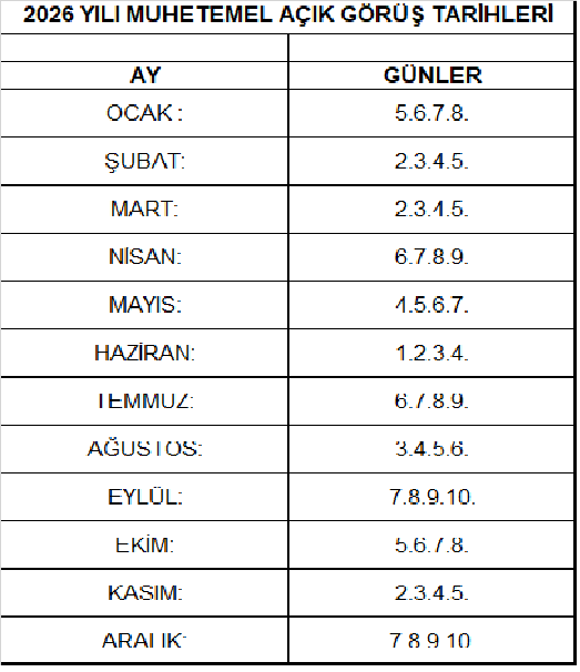 2026 YILI AÇIK VE KAPALI GÖRÜŞ LİSTESİ