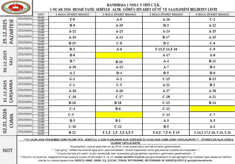2026 YILI YILBAŞI ÖZEL AÇIK GÖRÜŞ GÜN VE SAATLERİ