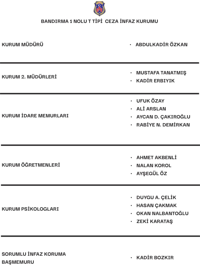 Adres Banvit Arkası Ömerli Köyü Yolu Üzeri Bandırma 1 Nolu T Tipi Kapalı Ceza İnfaz Kurumu Bandırma / BALIKESİR
